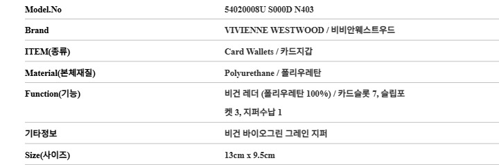 비비안웨스트우드 VIVIENNE WESTWOOD 54020008U S000D N403 여성 카드지갑