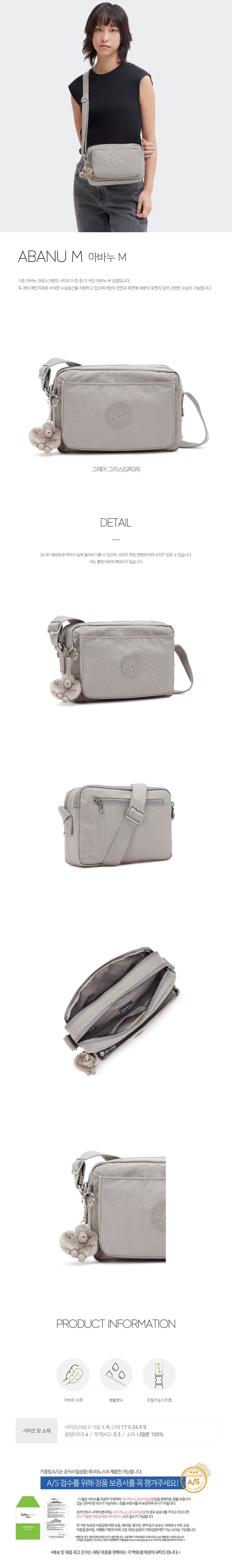 (롯데백화점)키플링 일상 크로스백 아바누 M 그레이 그리스 KPABS04 GRGR