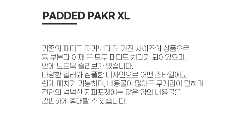 (롯데백화점)이스트팩 남녀공용 데일리백팩 패디드 파커 XL 블랙 EODBA12 008