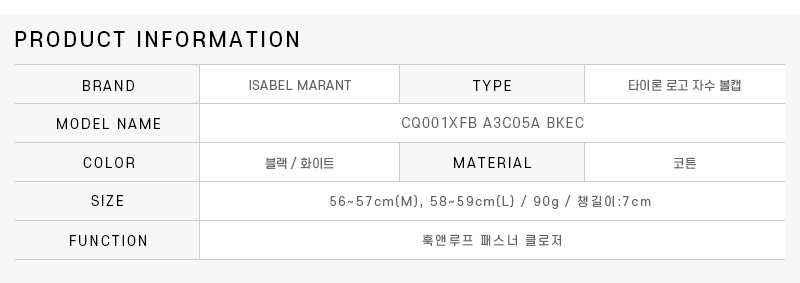 이자벨마랑 tyron 타이론 로고 볼캡 CQ001XFB A3C05A BKEC