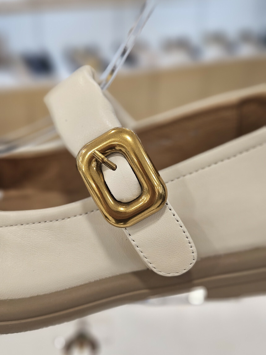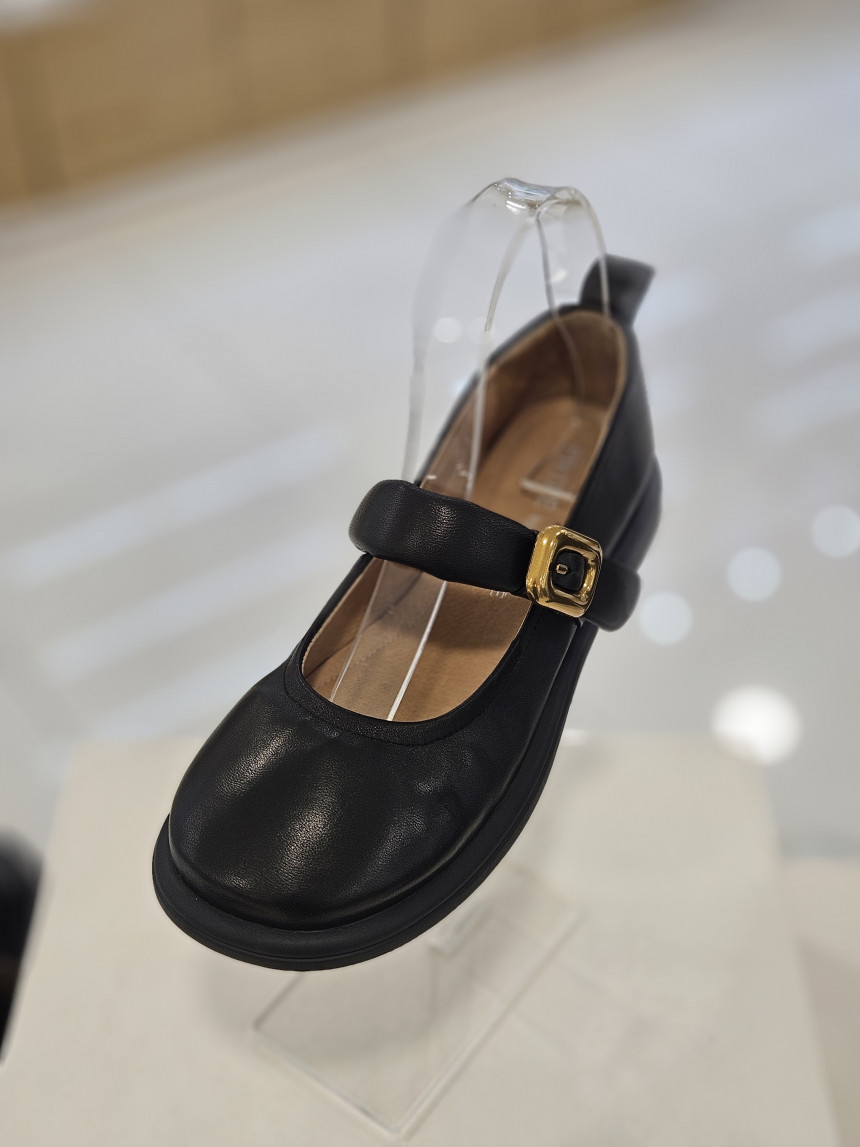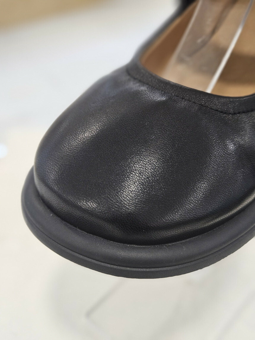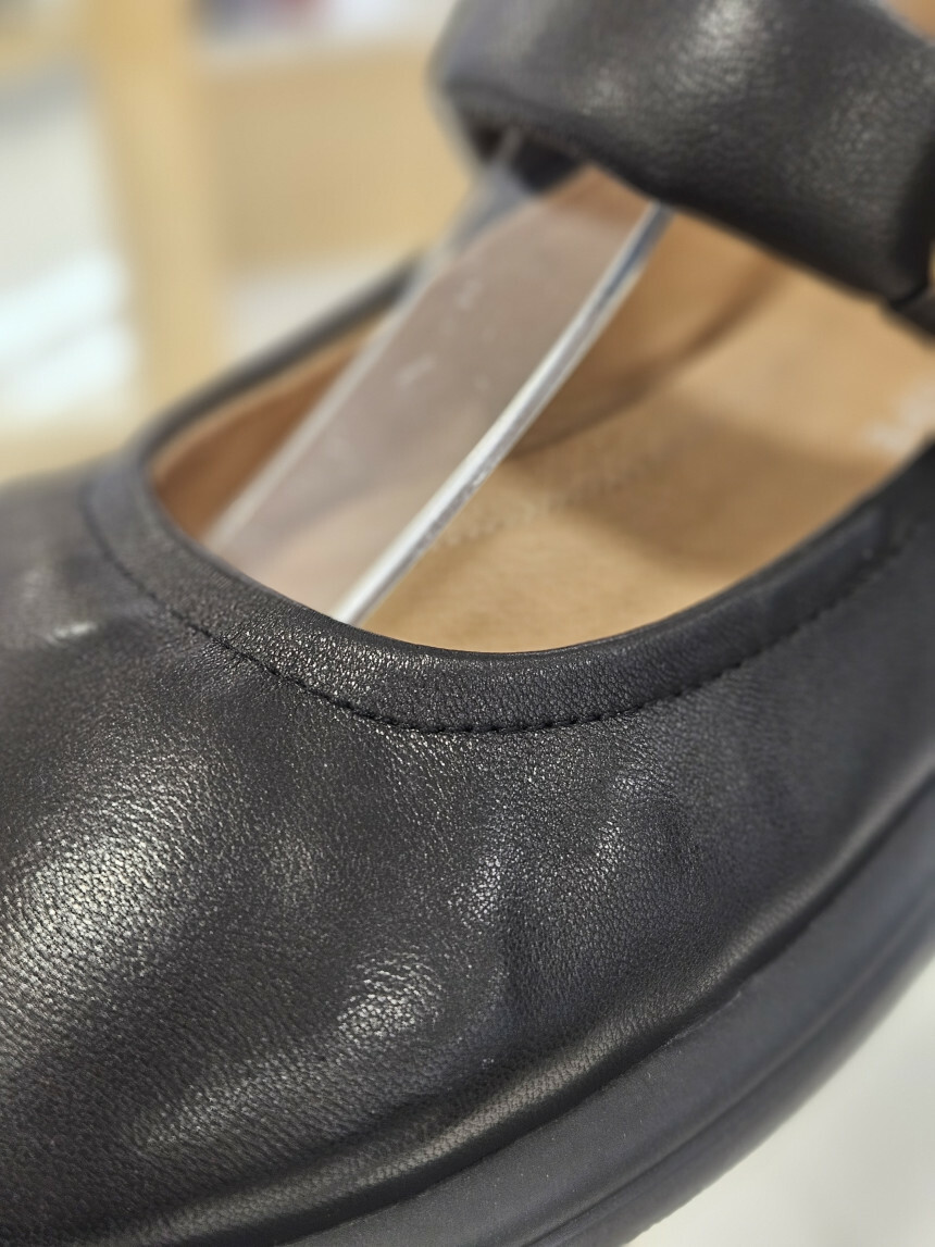 메리제인 형식으로 발등 끈이 밴딩으로 되어있어 착화감이 좋으며