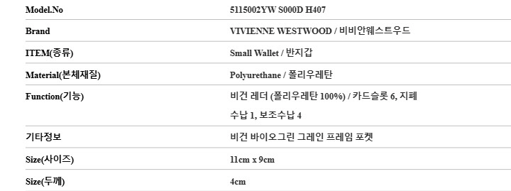 * 상품 옵션(사이즈) : 모델명:5115002YW S000D H407 *