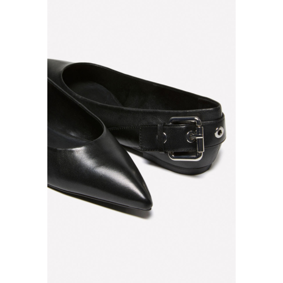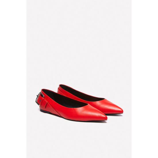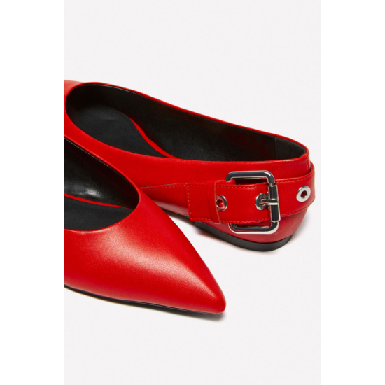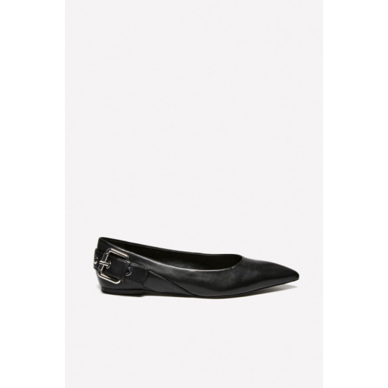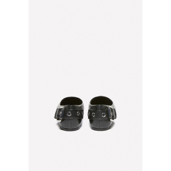 뒷부분의 버클장식으로 포인트를 준 플랫 슈즈.