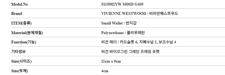 * 상품 옵션(사이즈) : 모델명:5115002YW S000D G405 *