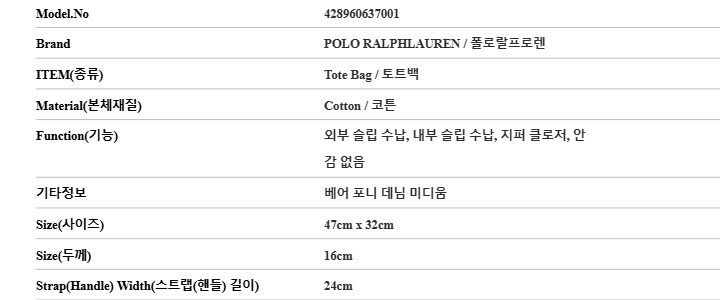 폴로랄프로렌 POLO RALPHLAUREN 428960637001 공용 토트백