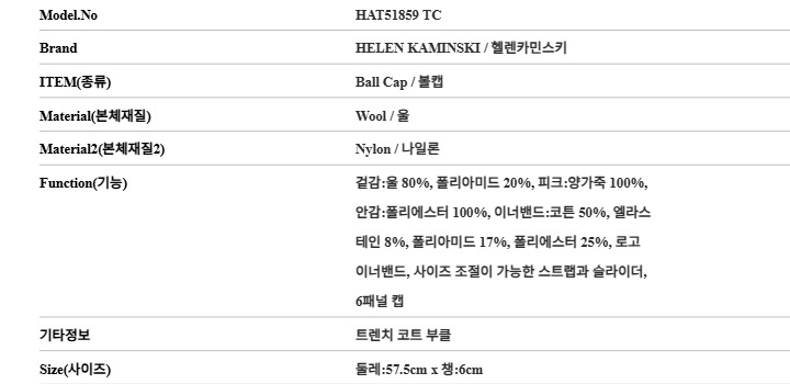 * 상품 옵션(사이즈) : 모델명:HAT51859 TC *