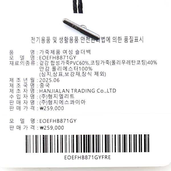 취급 시 주의사항 : 천연가죽-건조시킬때 응달에서 말릴 것-젖었을 때 직사광선 또는 불로 건조시키지 말것-마른 수건이나 기타 부드러운 천으로 닦을 것-보존시에는 온도의 습도가 높은 곳을 피할 것-세무, 누박 등의 제품은 솔로 먼지만 제거하고 왁스 사용하지말것- 에나멜 가죽은 부드러운 융으로 먼지를 닦은 후 가죽 전용 크림을 사용하되 변색우려가 있으니 다른제품과 밀착되지 않게 주의할것합성가죽-건조시킬 때 응달에서 말릴 것-기름기가 있는 장소에서의 사용은 가능한 피할 것-비닐, 고무원단의 때는 비눗물에 적신 천을 사용-불 옆에 놓으면 변화 변형 될 수 있음- 표면에 때를 빼기 위해 비눗물에 적신 천을 사용하고, 구두약 등의 보혁유를 사용 할 필요 없음