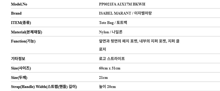 이자벨마랑 ISABEL MARANT PP0021FA A1X17M BKWH 여성 토트백