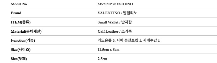 발렌티노 VALENTINO 6W2P0P39 VSH 0NO 여성 반지갑
