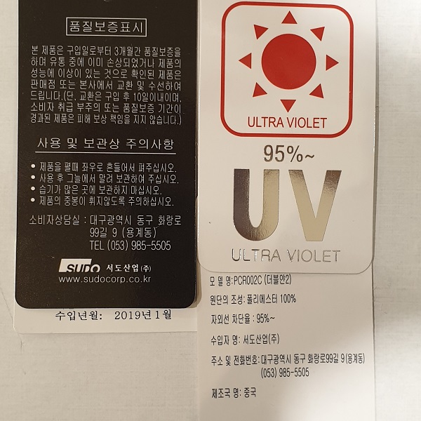 취급 시 주의사항 : 제품을 펼 때 좌우로 흔들어서 펴주십시오.사용 후 그늘에서 말려 보관하여 주십시오.습기가 많은 곳에서 보관하지 마십시오.제품의 중봉이 휘지 않도록 주의하십시오.원단 오염 시 표백제를 사용하지 마시고, 중성세제로 부분 세탁하십시오.
