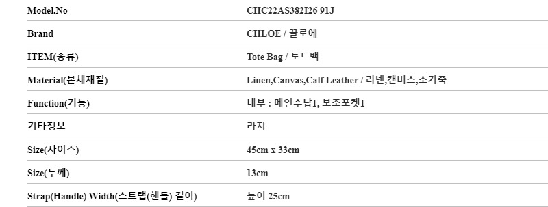끌로에 토트백 CHC22AS382I26 91J 우디 라지 여성토트백