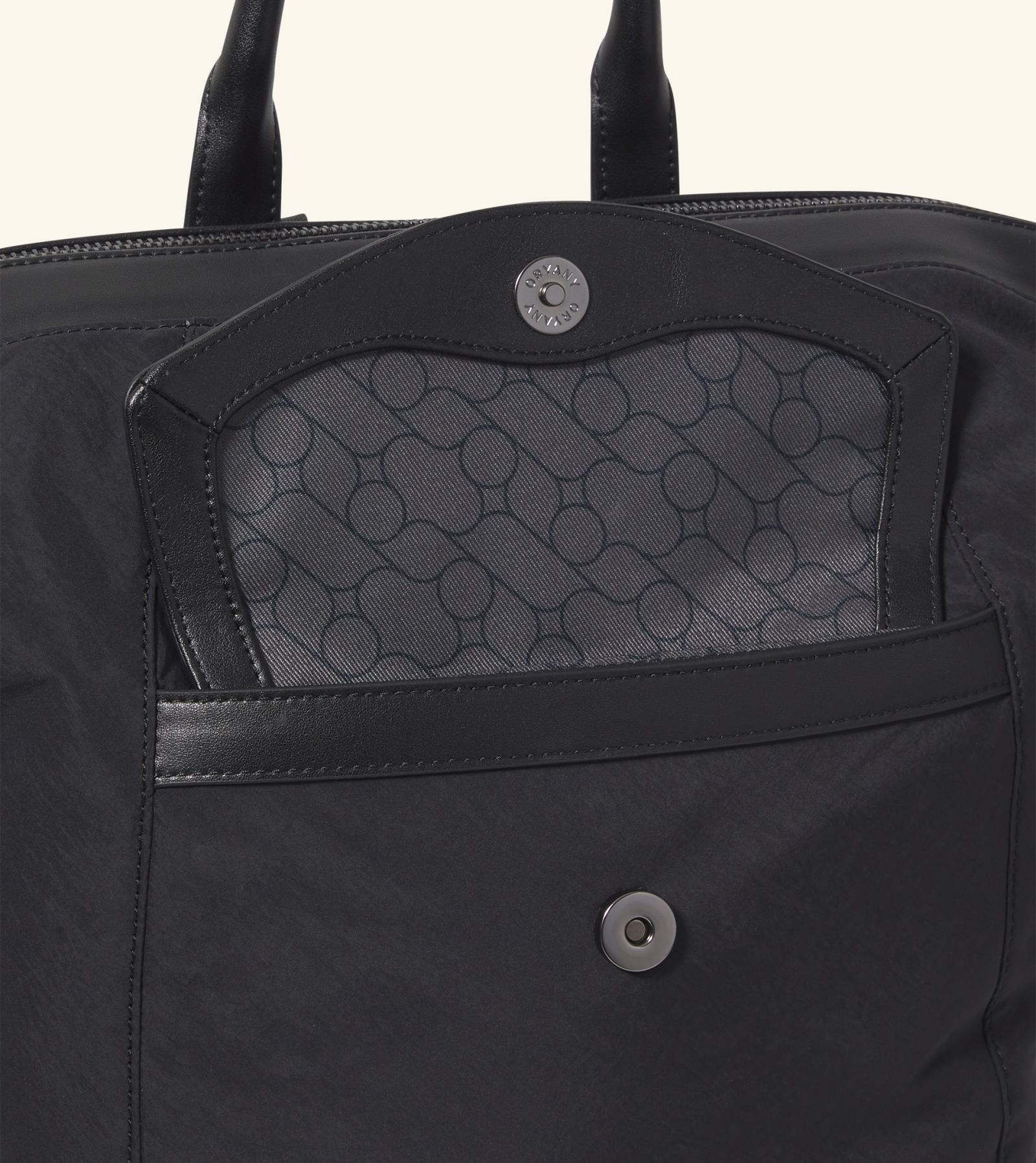 가방 상단에 지퍼가 넓게 열리는 디자인으로 메인공간이 잘 보이고, 수납이 용이합니다