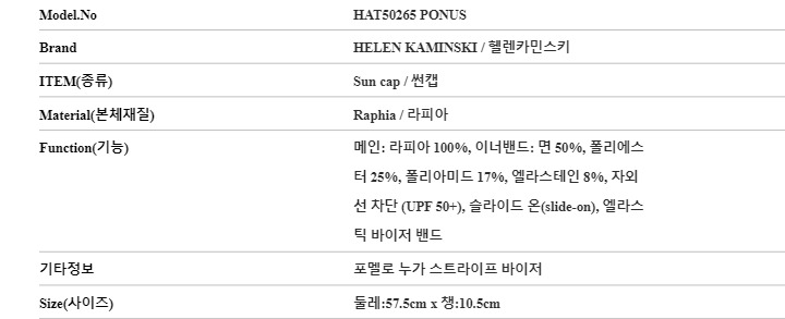 * 상품 옵션(사이즈) : 모델명:HAT50265 PONUS *