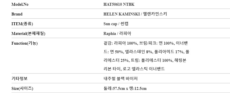 * 상품 옵션(사이즈) : 모델명:HAT50610 NTBK *