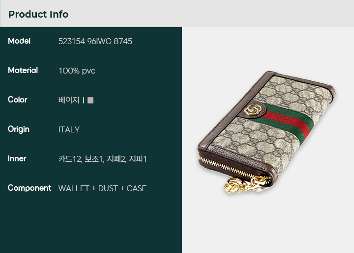 구찌 25SS (523154 96IWG 8745) 여성 오피디아 지퍼 장지갑
