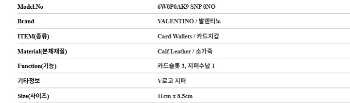발렌티노 VALENTINO 6W0P0AK9 SNP 0NO 여성 카드지갑