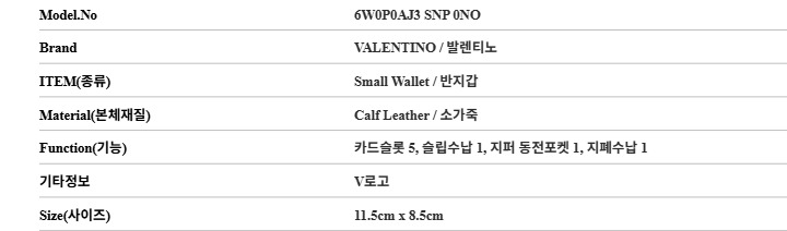 발렌티노 VALENTINO 6W0P0AJ3 SNP 0NO 여성 반지갑
