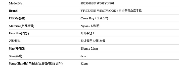 비비안웨스트우드 여성 잭슨 리나일론 스몰 크로스백 가방(4803000BU W001Y N401)