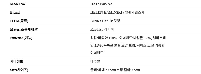 * 상품 옵션(사이즈) : 모델명:HAT51985 NA *