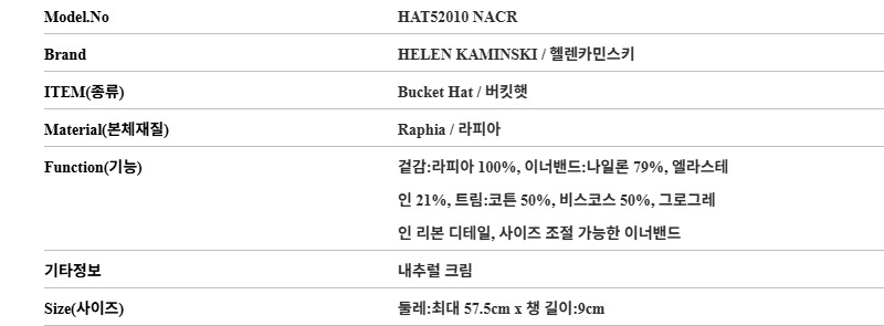 * 상품 옵션(사이즈) : 모델명:HAT52010 NACR *