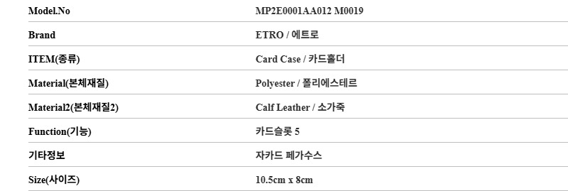 * 상품 옵션(사이즈) : 모델명:MP2E0001AA012 M0019 *