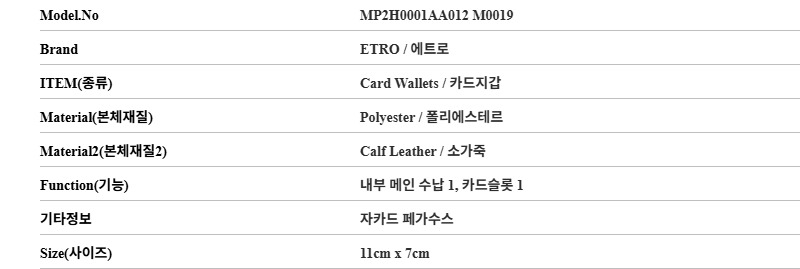 * 상품 옵션(사이즈) : 모델명:MP2H0001AA012 M0019 *