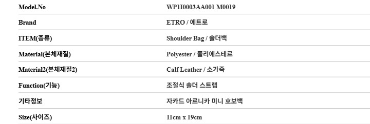 * 상품 옵션(사이즈) : 모델명:WP1I0003AA001 M0019 *