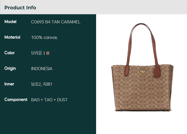 코치 25FW (C0693 B4 TAN CARAMEL) 여성 윌로우 토트백