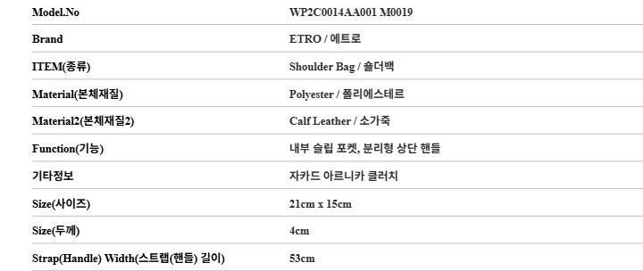 에트로 ETRO WP2C0014AA001 M0019 여성 숄더백