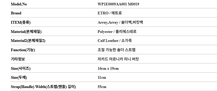 에트로 ETRO WP1E0009AA001 M0019 여성 숄더백 버킷백