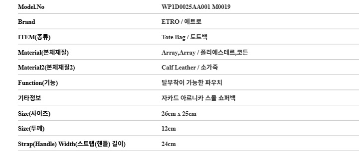 에트로 ETRO WP1D0025AA001 M0019 여성 토트백