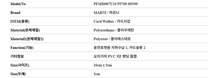 * 상품 옵션(사이즈) : 모델명:PFMI0007U10 P5769 00N99 *