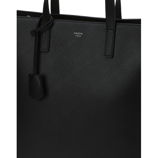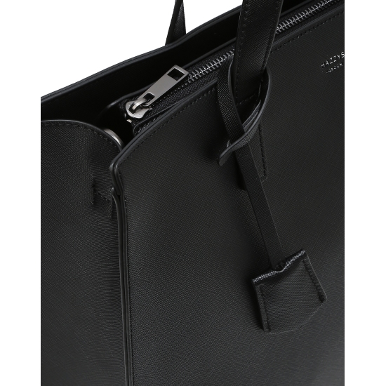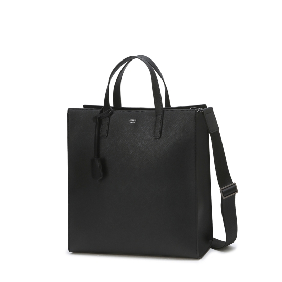 고급스러운 블랙 바탕에 앞면 참 장식과 은박 로고로 포인트를 준 토트백 입니다.