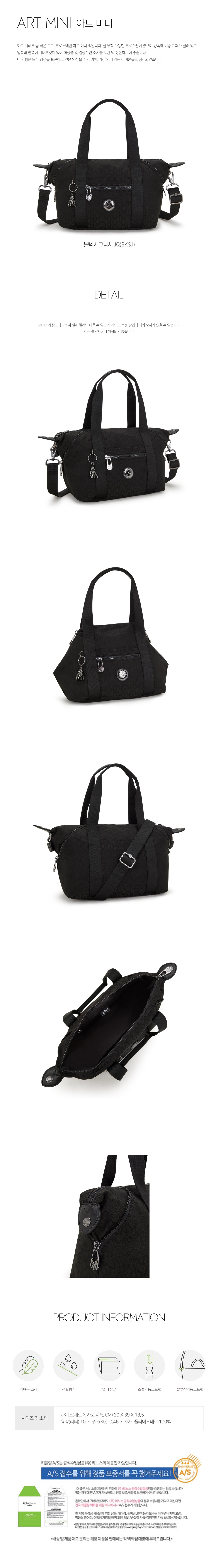 (롯데백화점)키플링 10리터 토트 숄더 크로스백 아트미니 블랙 시그니처 KPABT04 BKSJ