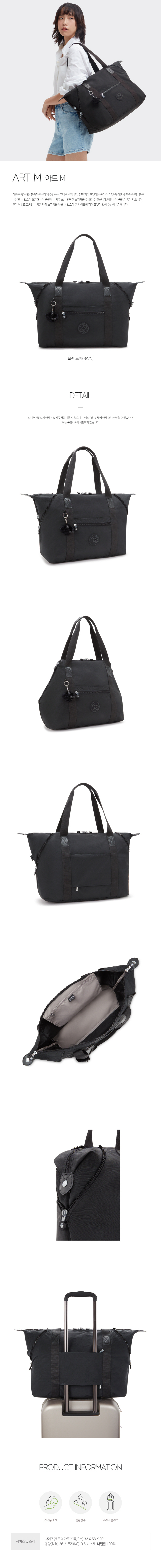 (롯데백화점)키플링 26리터 여행 보스턴백 아트M 블랙 누아 KPCBR01 BKN