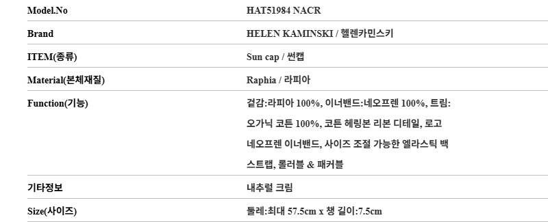 헬렌카민스키 HELEN KAMINSKI HAT51984 NACR 여성 썬캡
