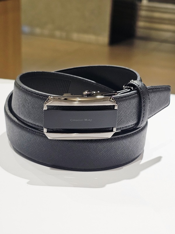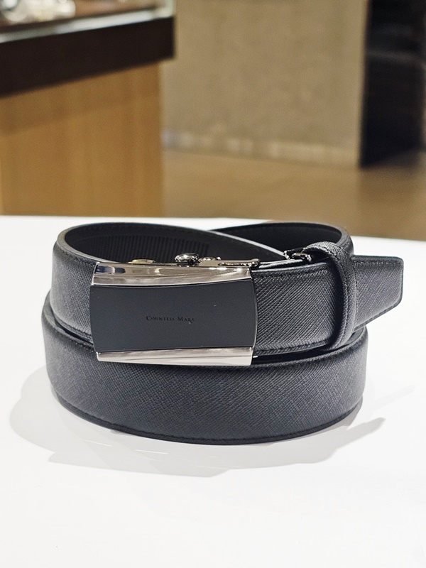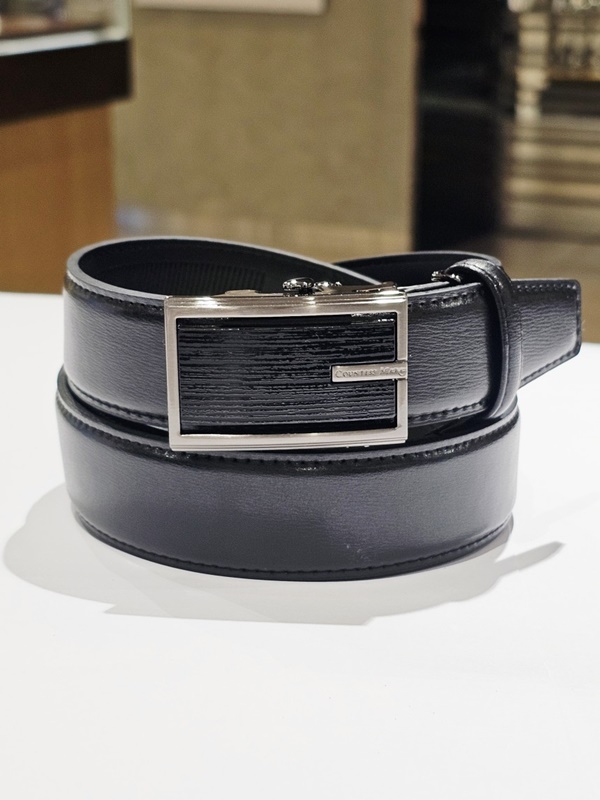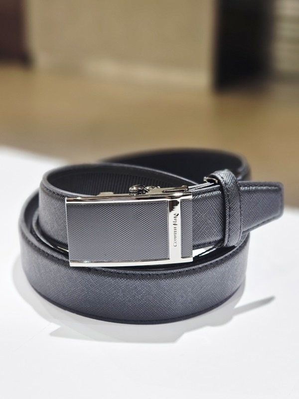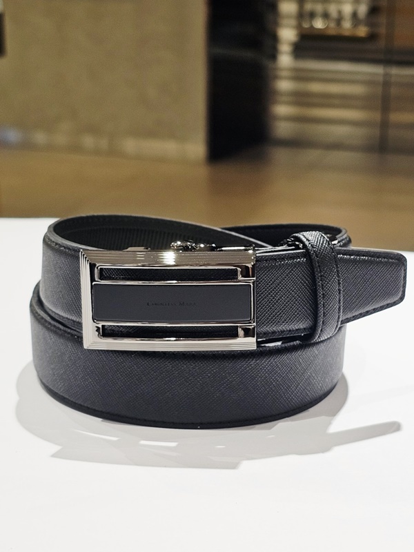 심플한 사각 프레임의 무광 버클 장식으로 세련된 외관을 연출한 자동 벨트입니다.