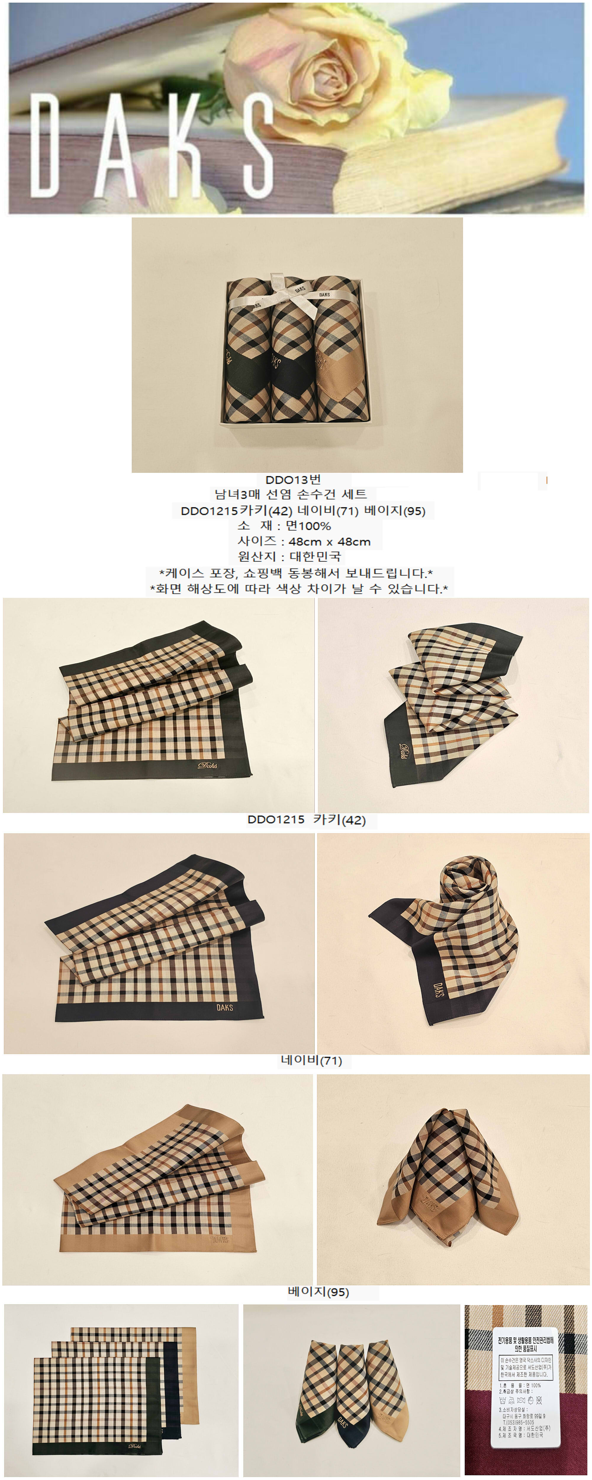 대구백화점 닥스남녀3매 선염 손수건 세트(DDO13번)