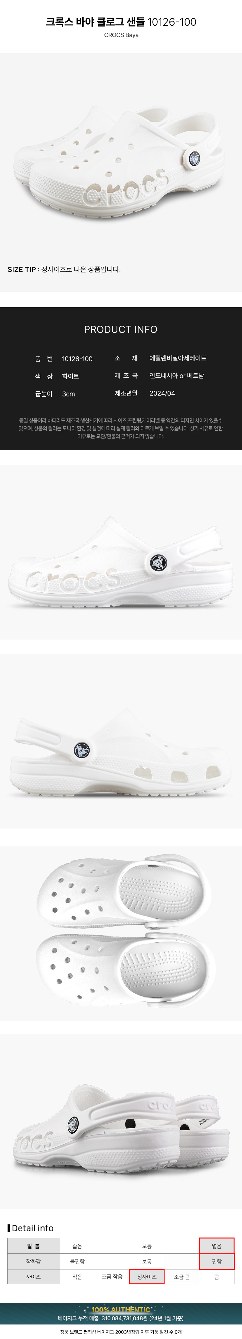 2025 SS 크록스 바야 클로그 남자 여성 슬리퍼 샌들 화이트 10126-100