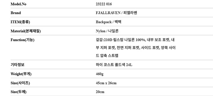 23222 016 하이 코스트 폴드색 24L 백팩 가방