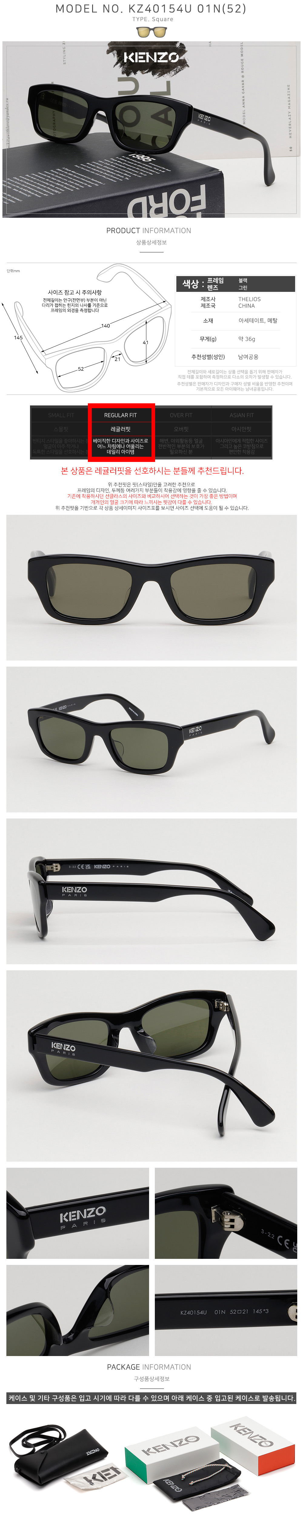하프클럽/겐조 선글라스 KZ40154U 01N 명품 블랙 뿔테 사각