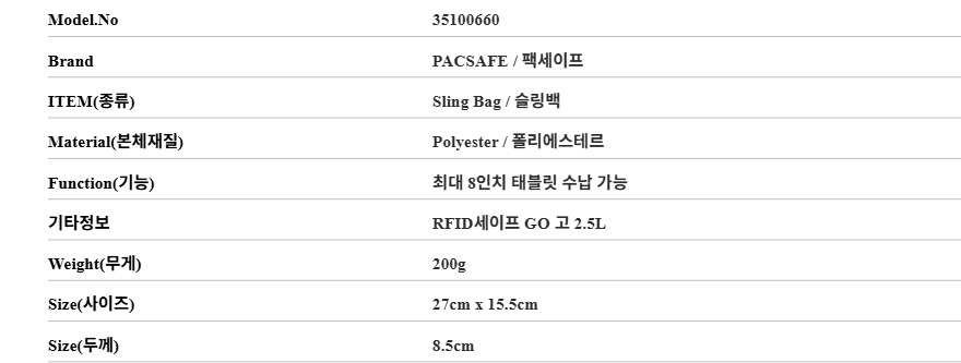 35100660 RFID세이프 GO 고 2.5L 슬링백