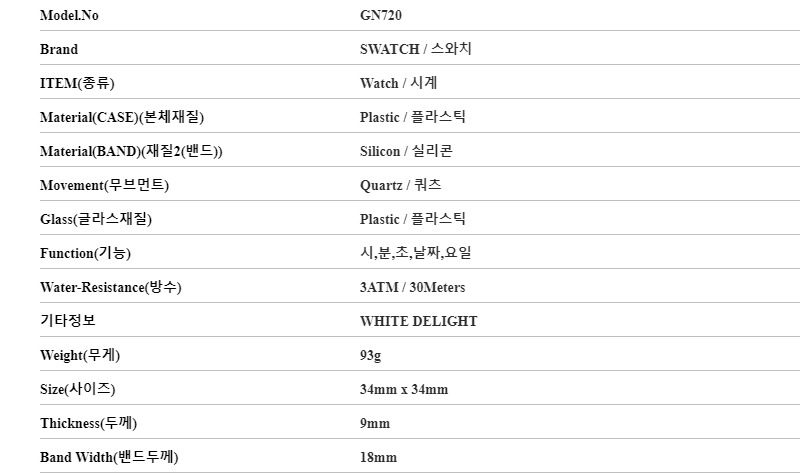 GN720 WHITE DELIGHT 공용 젤리시계 34mm