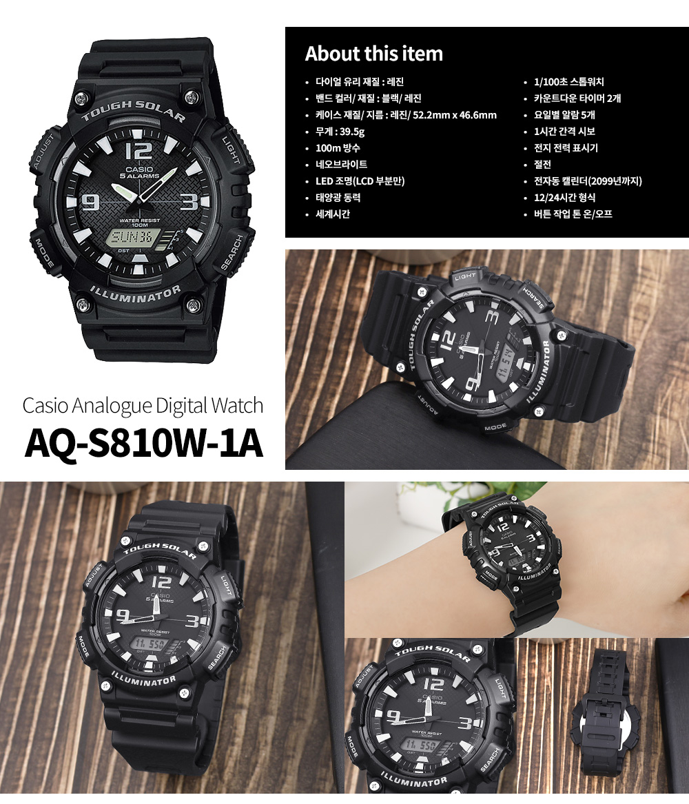 정품 스타샵 AQ-S810W-1A 카시오 남성 군인 군대 손목시계 c108