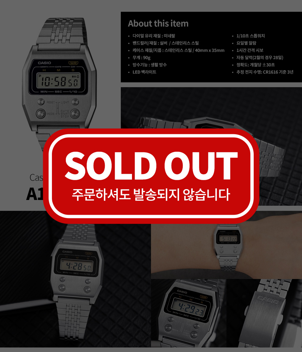 A1100G-5 카시오 모던 레트로 빈티지 스퀘어 디지털 공용 메탈 시계 c160