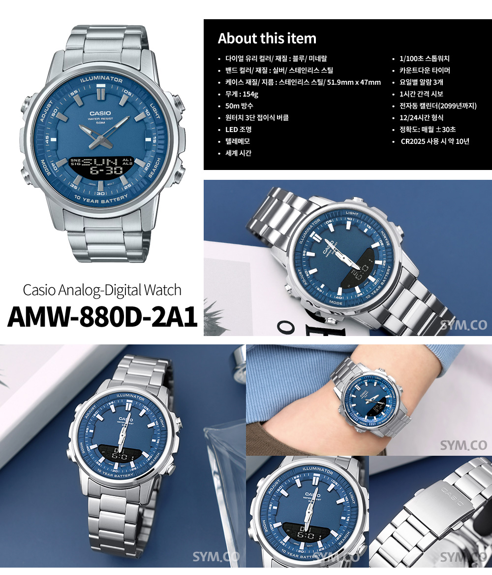 AMW-880D-2A1 카시오 아날로그 디지털 다이버 남자 손목 시계 c161