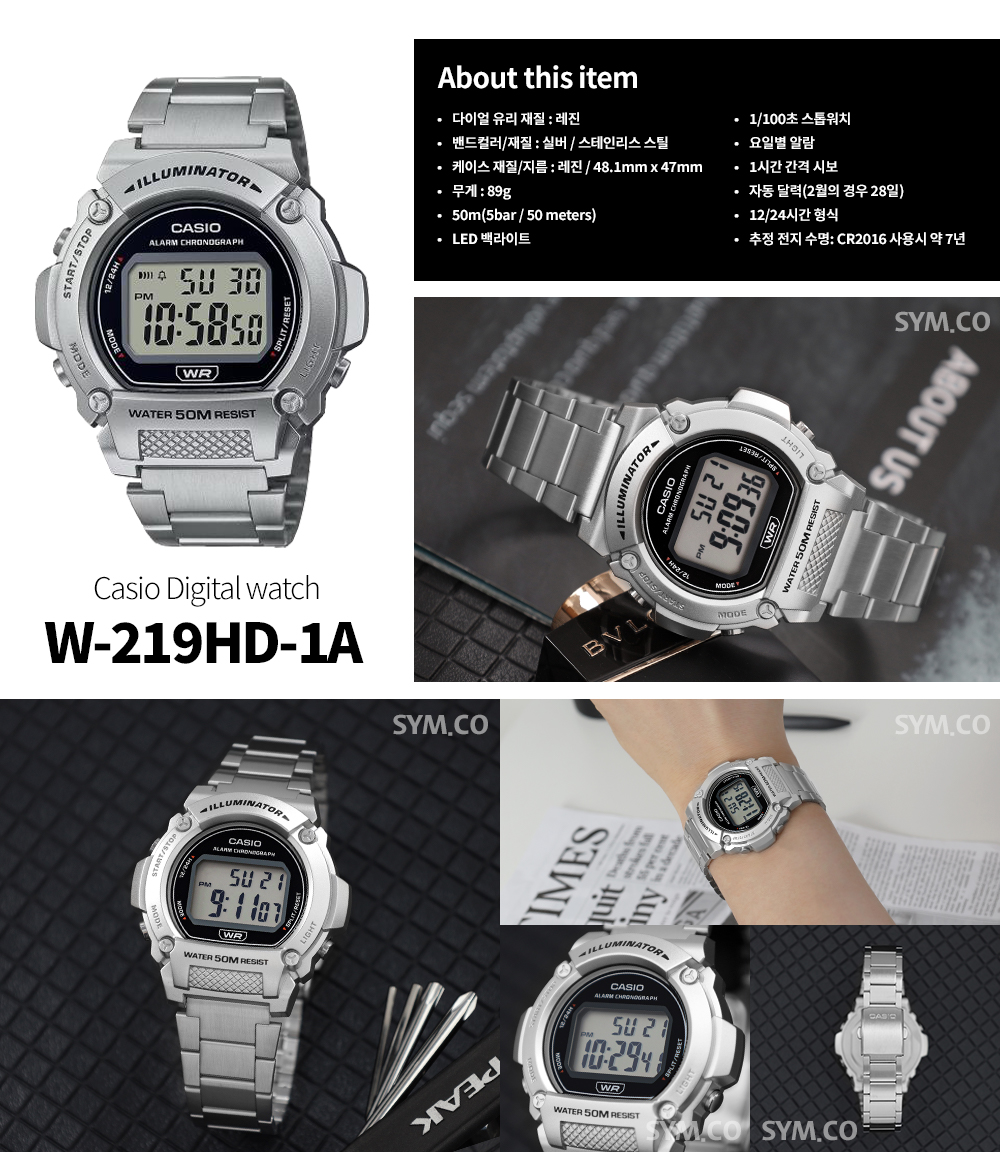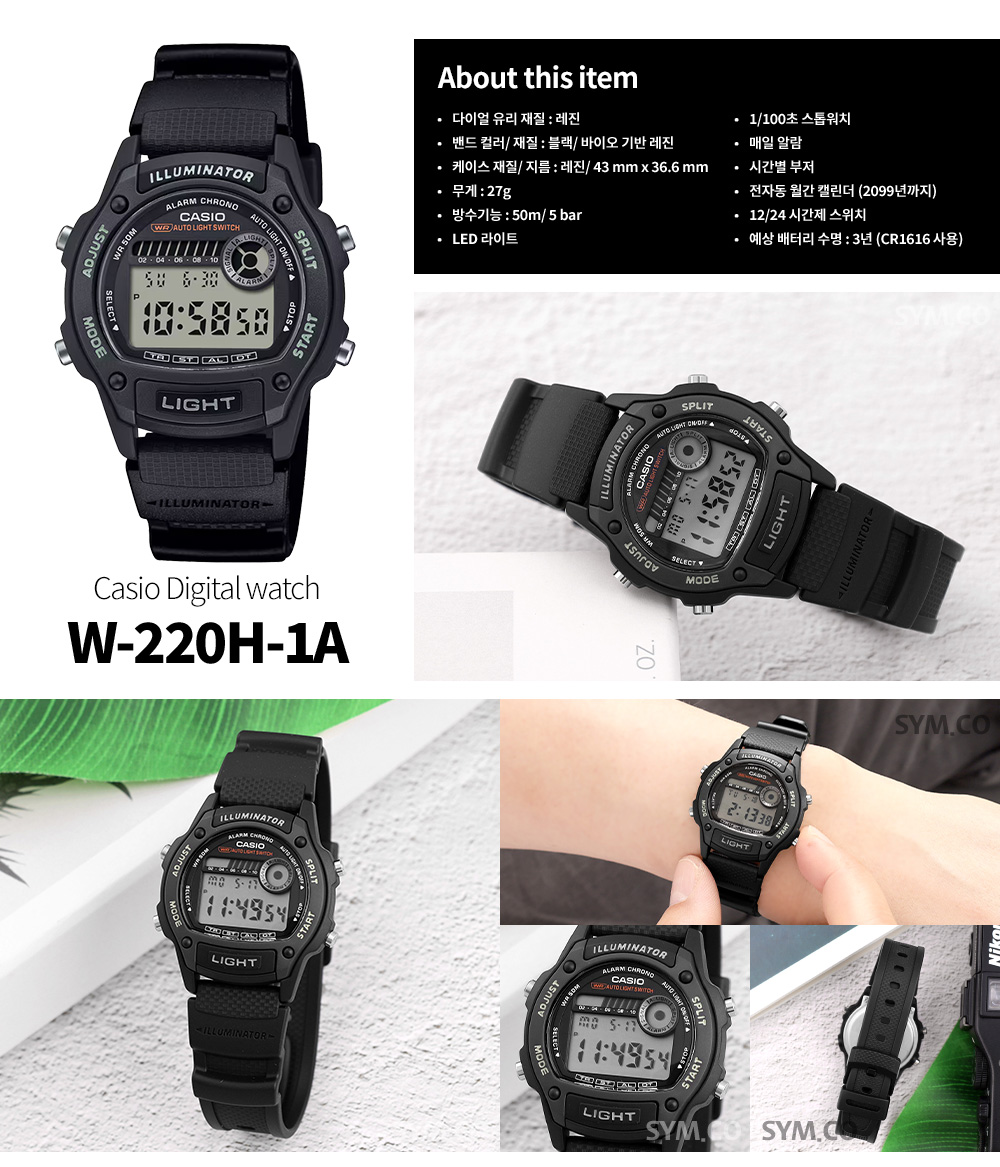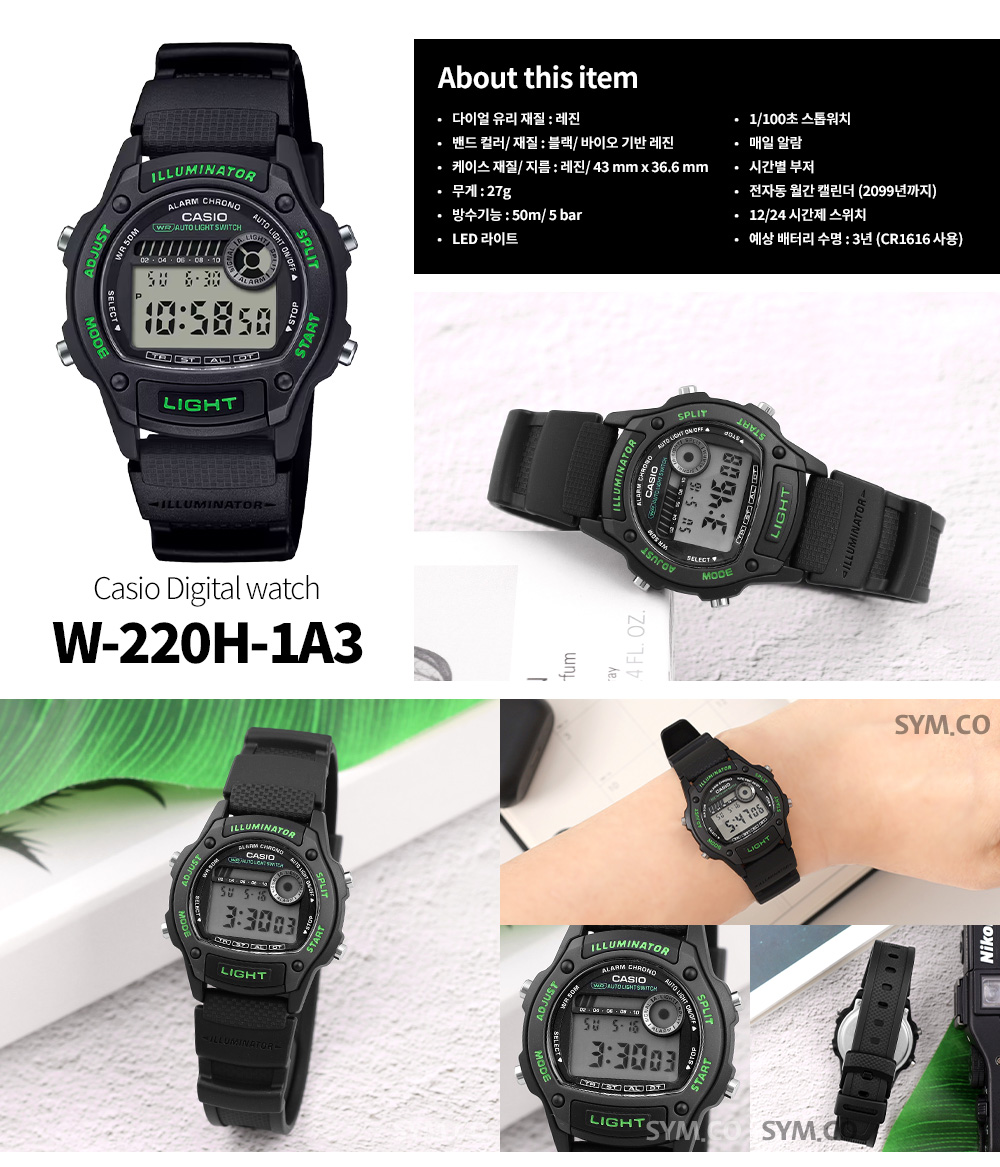 W-219HD-1A 카시오 스포티 디자인 남성 방수 러닝 시계 c147