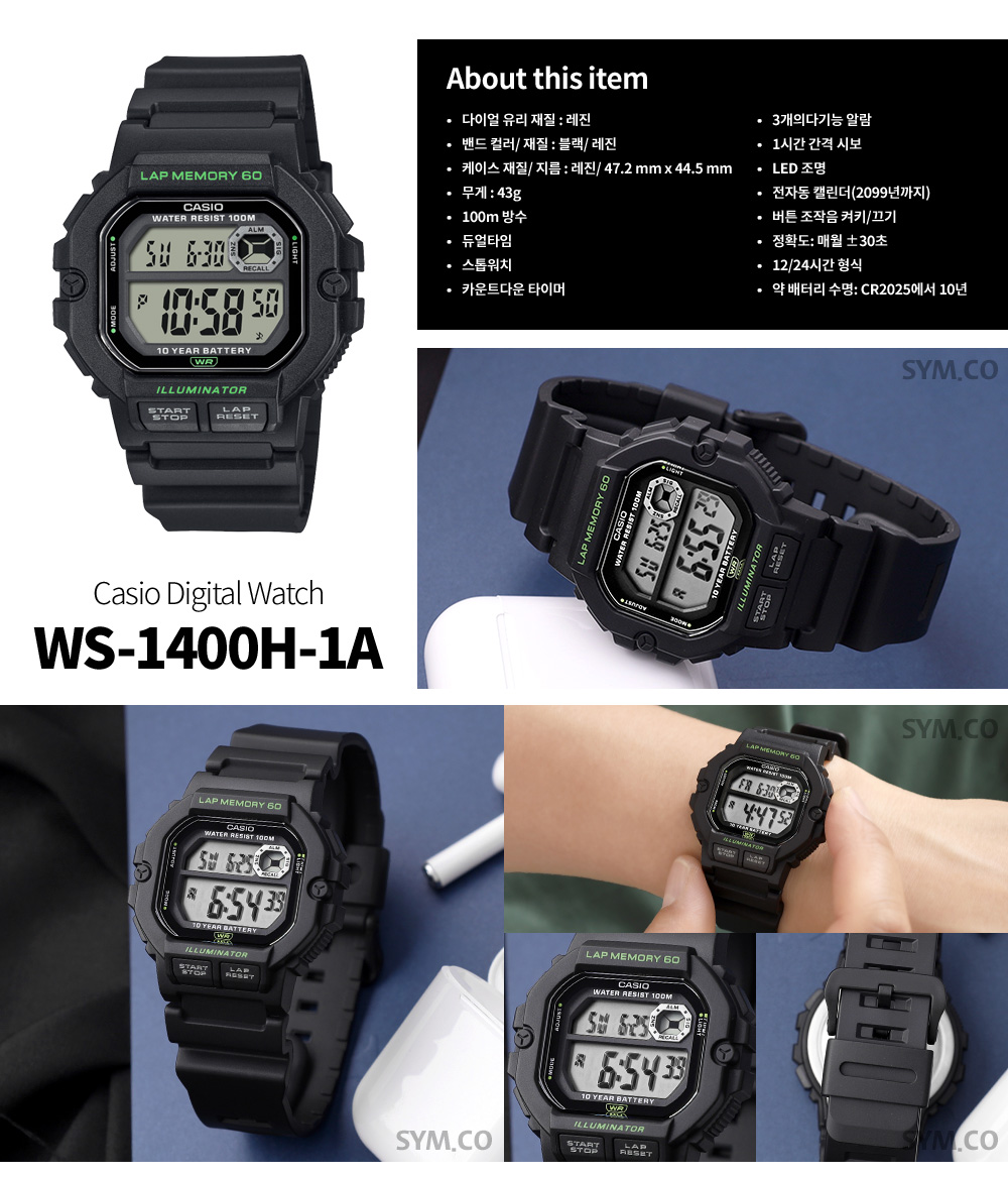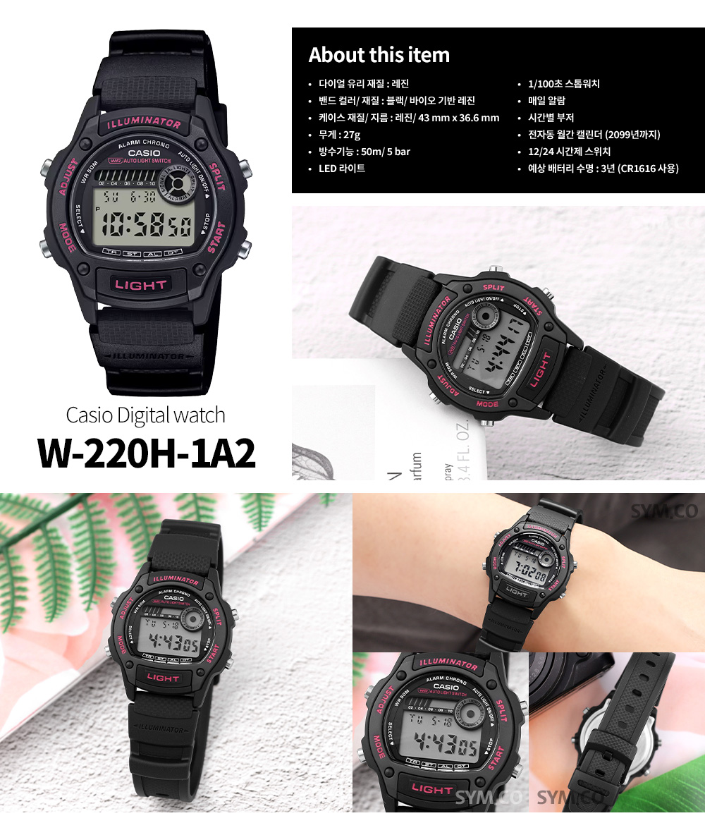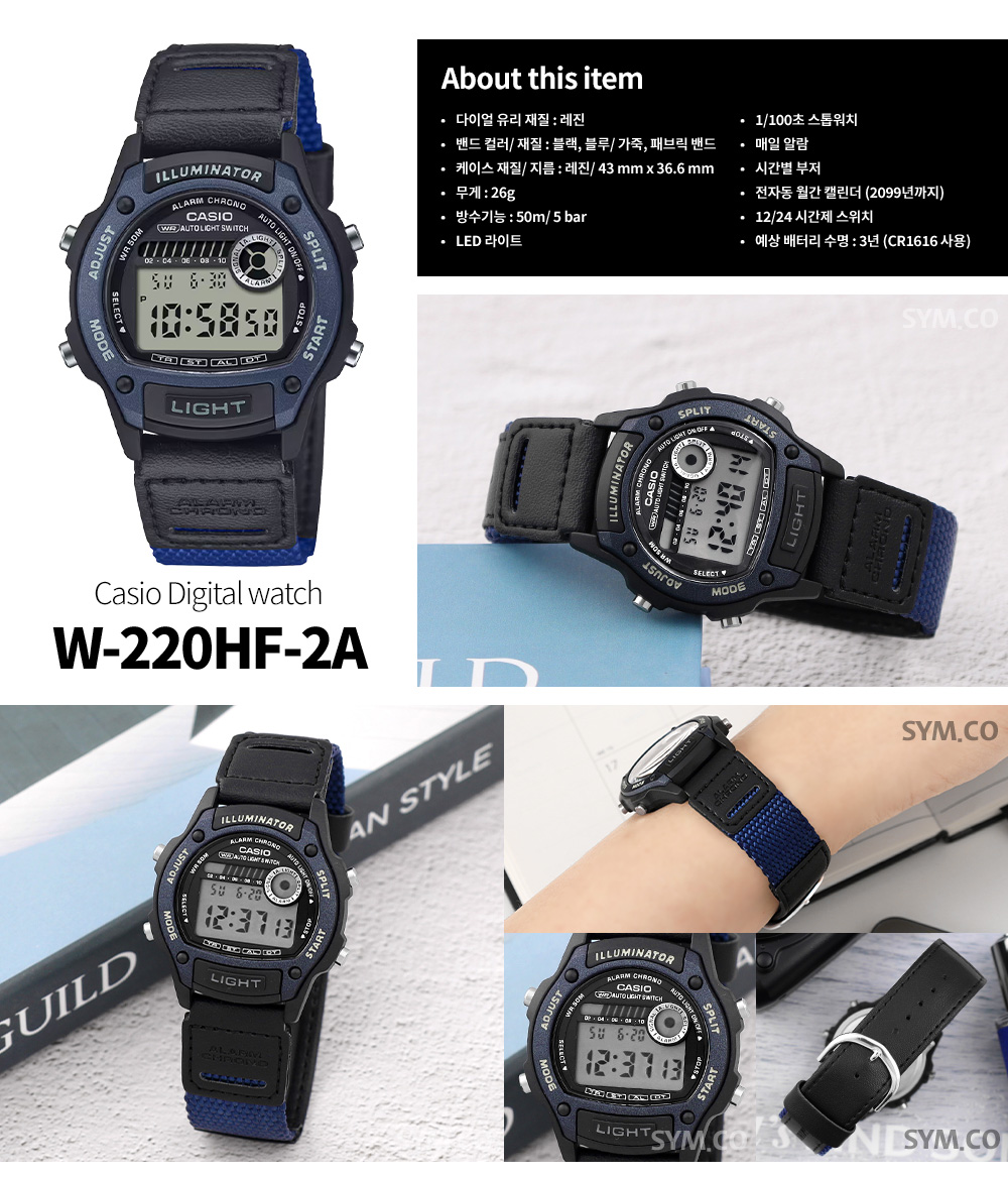 W-219HD-1A 카시오 스포티 디자인 남성 방수 러닝 시계 c147