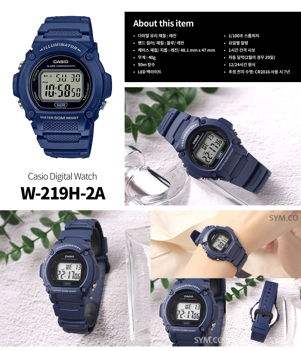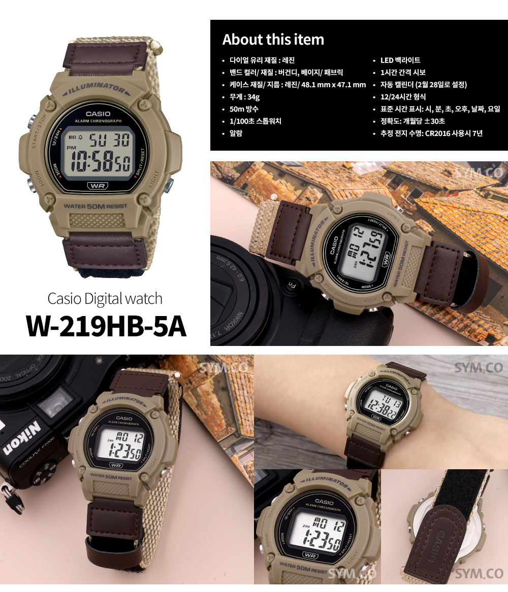 W-219HB-5A 카시오 스포티 디자인 남성 나토 시계 c153