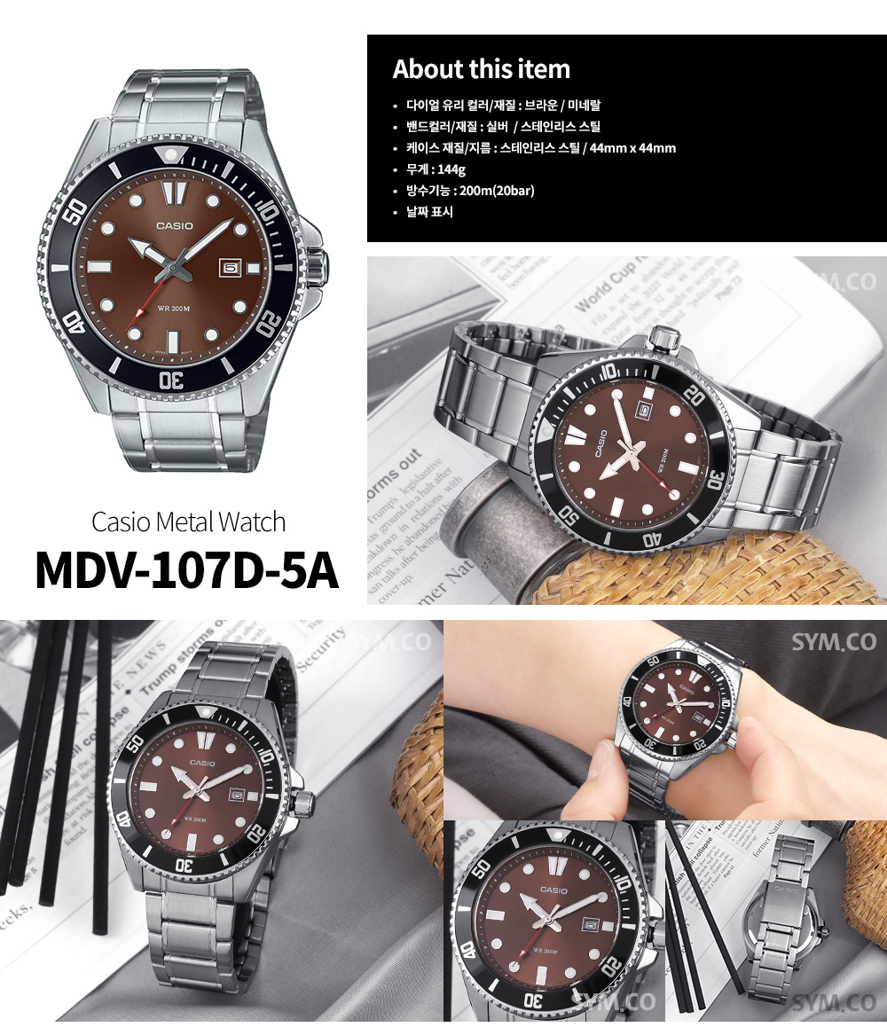 카시오 남성 회전베젤 방수 아날로그 손목 시계 MDV-107D-3A c156